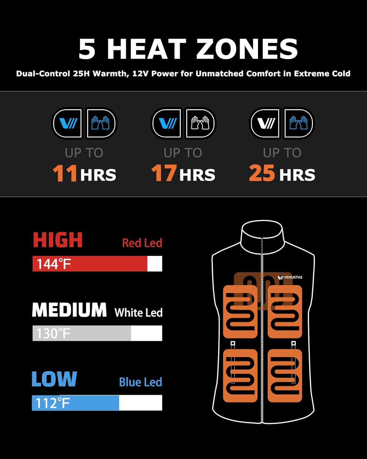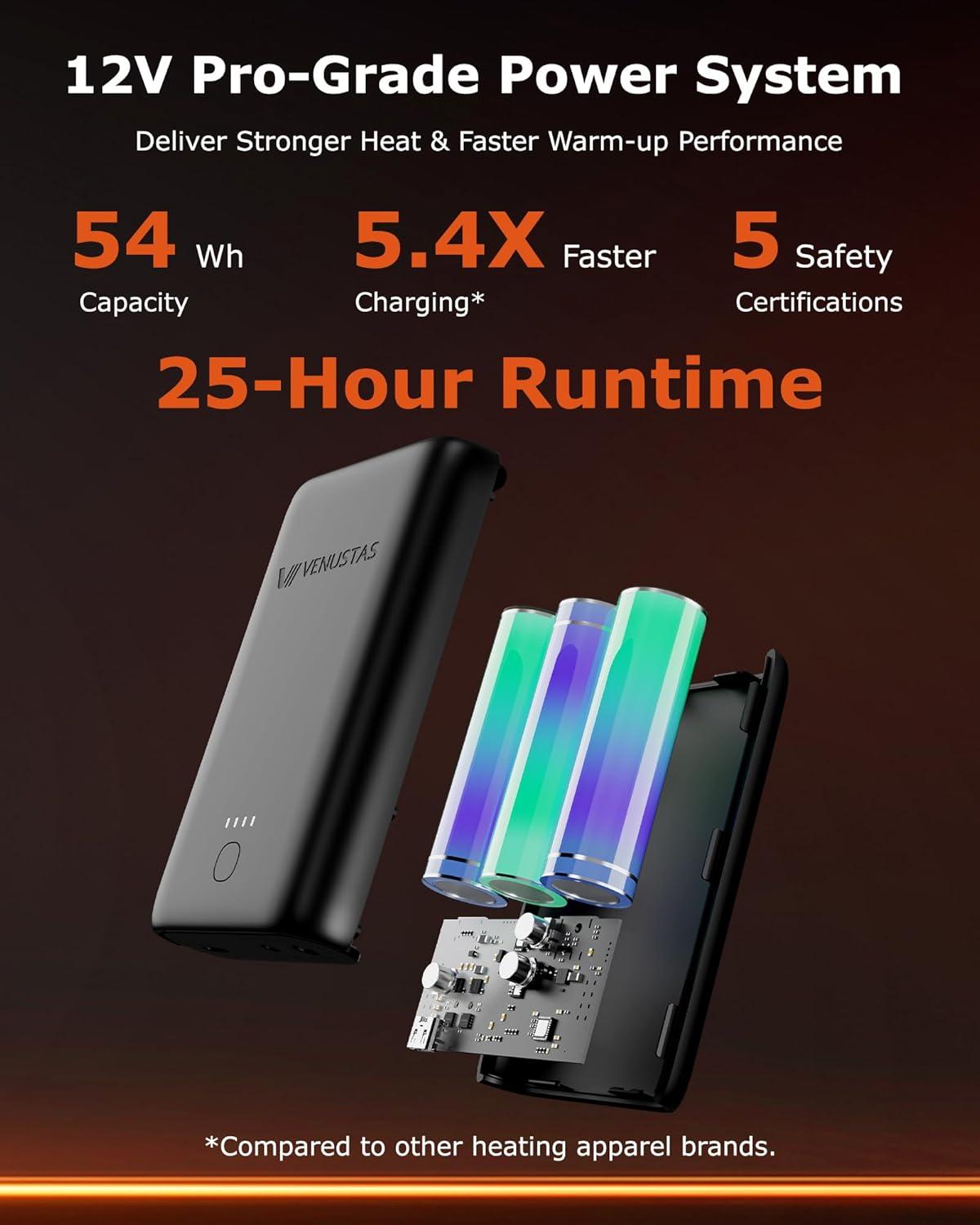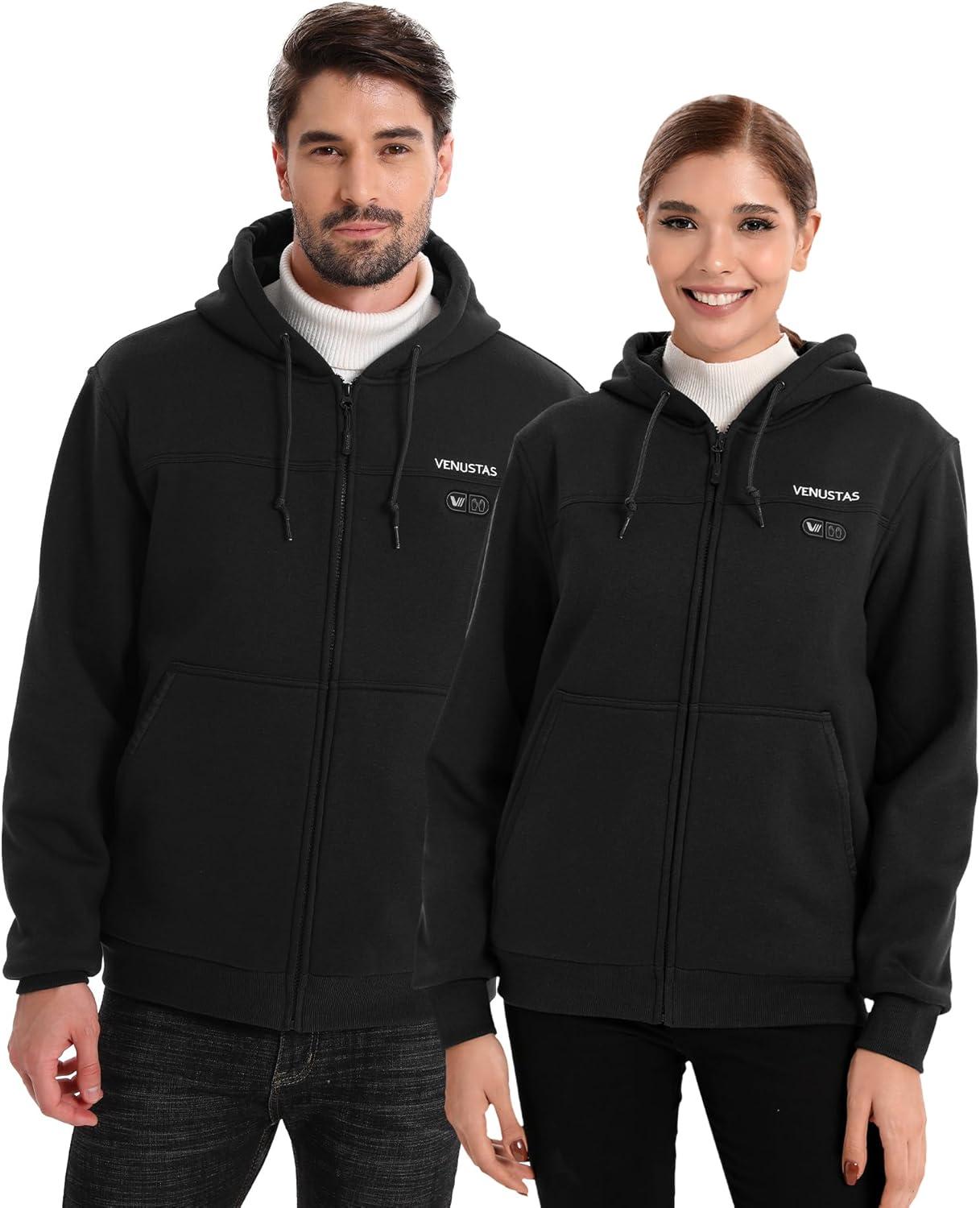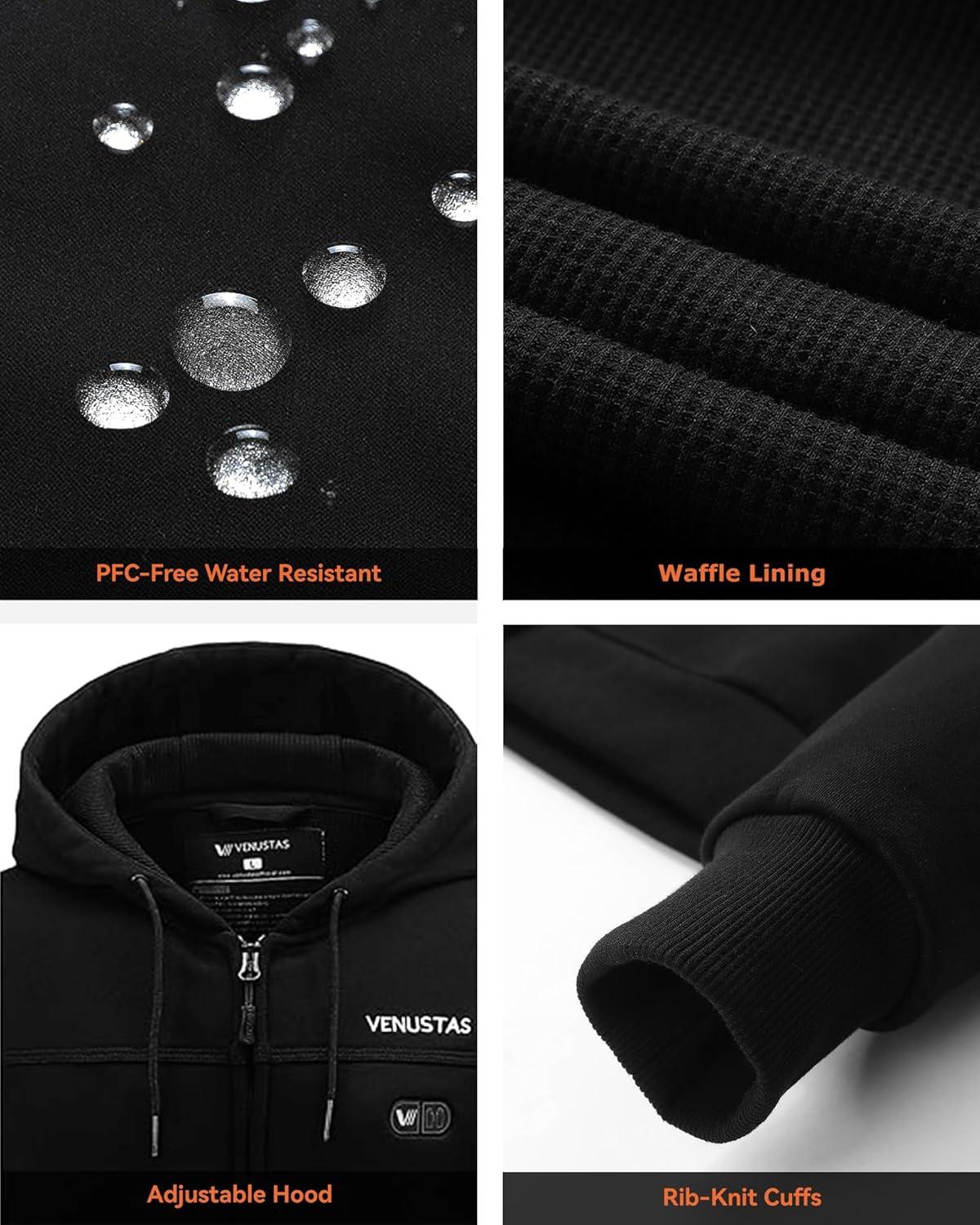 Venustas 12V Dual-Control Heated Hoodie with Battery for Men & Women, Water-Repellent Unisex Heated Coat for Outdoor Work(Black)