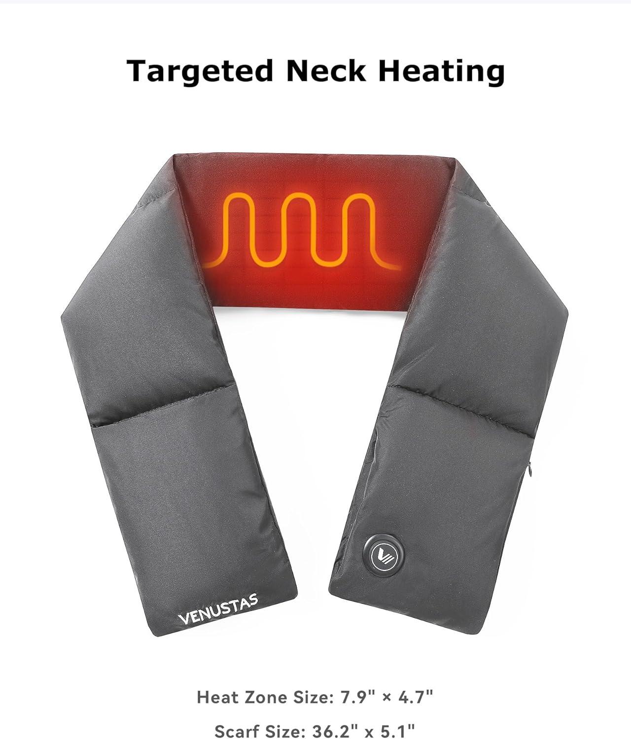 Venustas Heated Down Scarf with Battery, 20H Long Lasting Warmth, 90% White Duck Down Heated Neck Warmer for Women Men(Dark Gray)