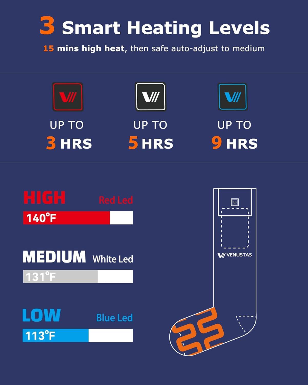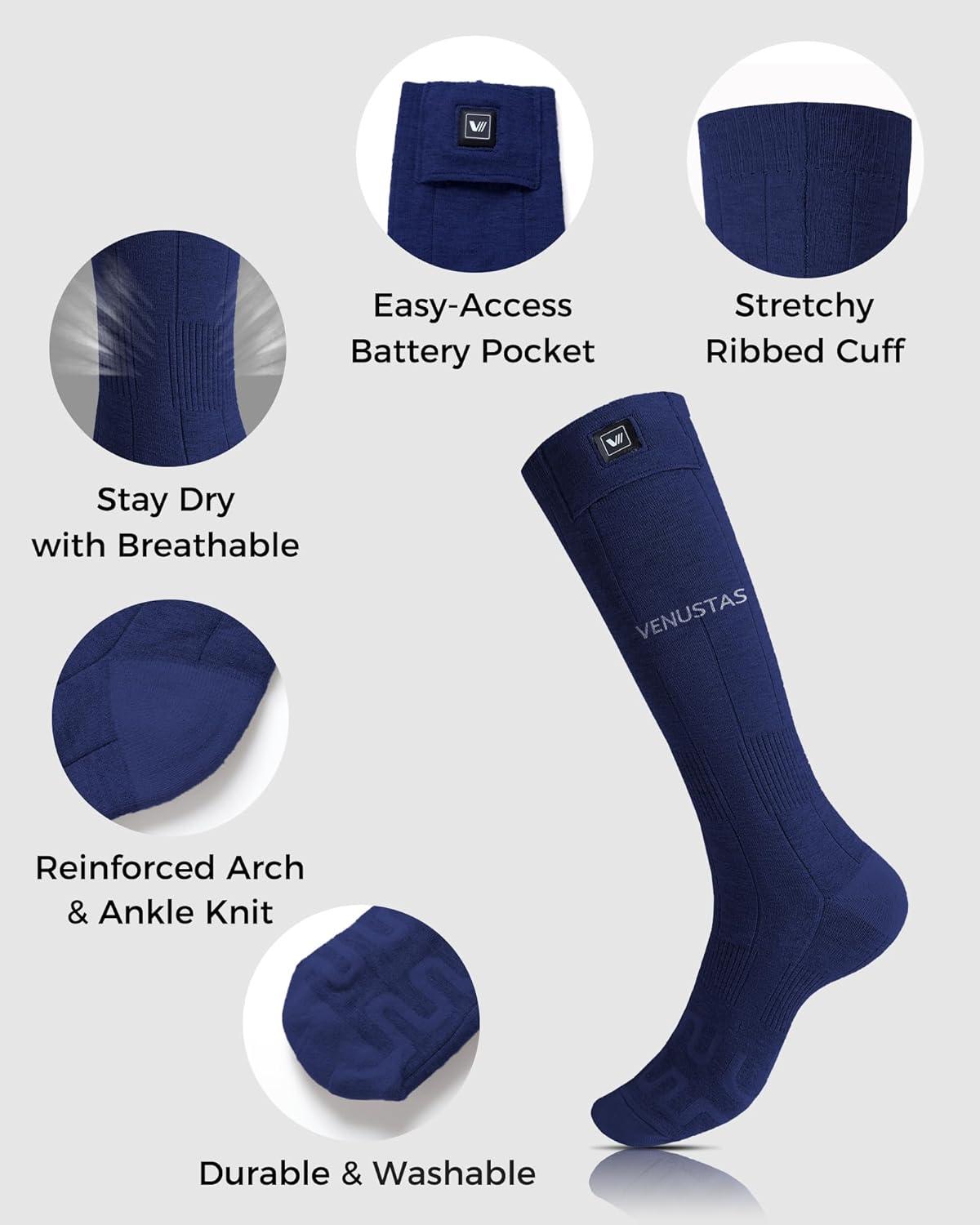 Venustas Heated Socks with Battery for Men Women, Rechargeable Heated Socks For Hunting Ski and Feet Warm(Navy)