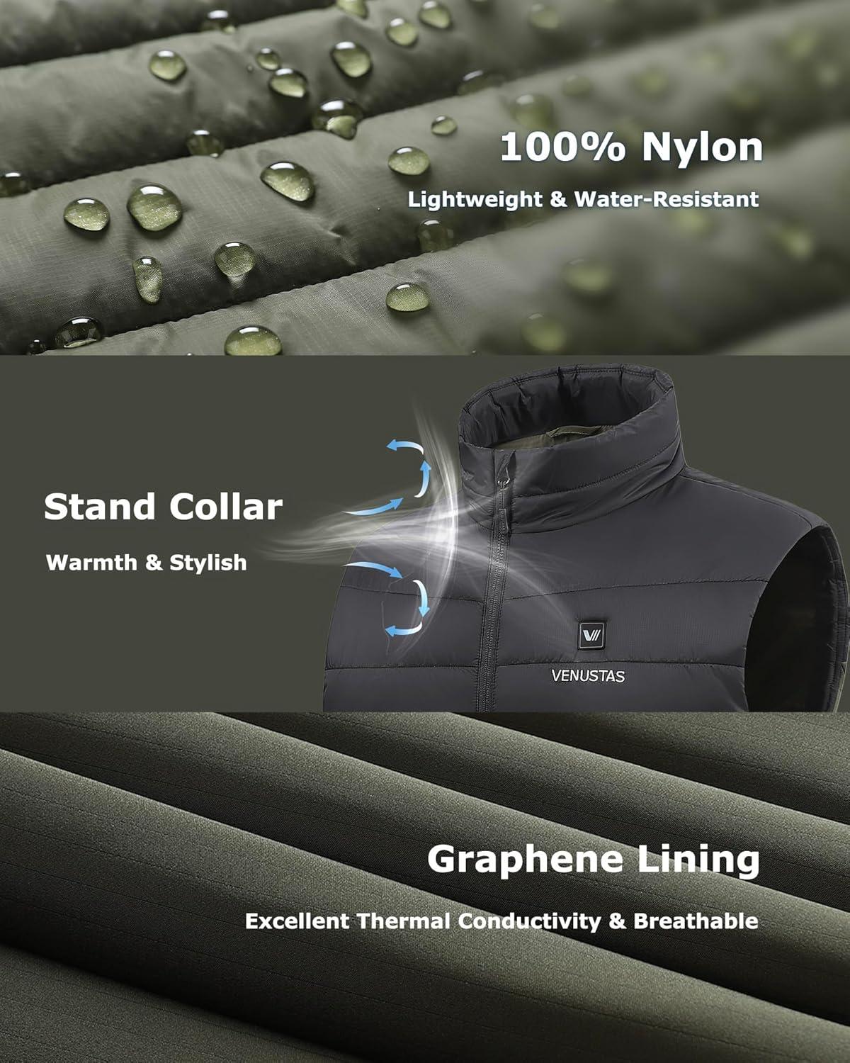 Venustas Men’s Heated Vest with Battery, Lightweight Quilted Vest for Men(Olive / Grill)